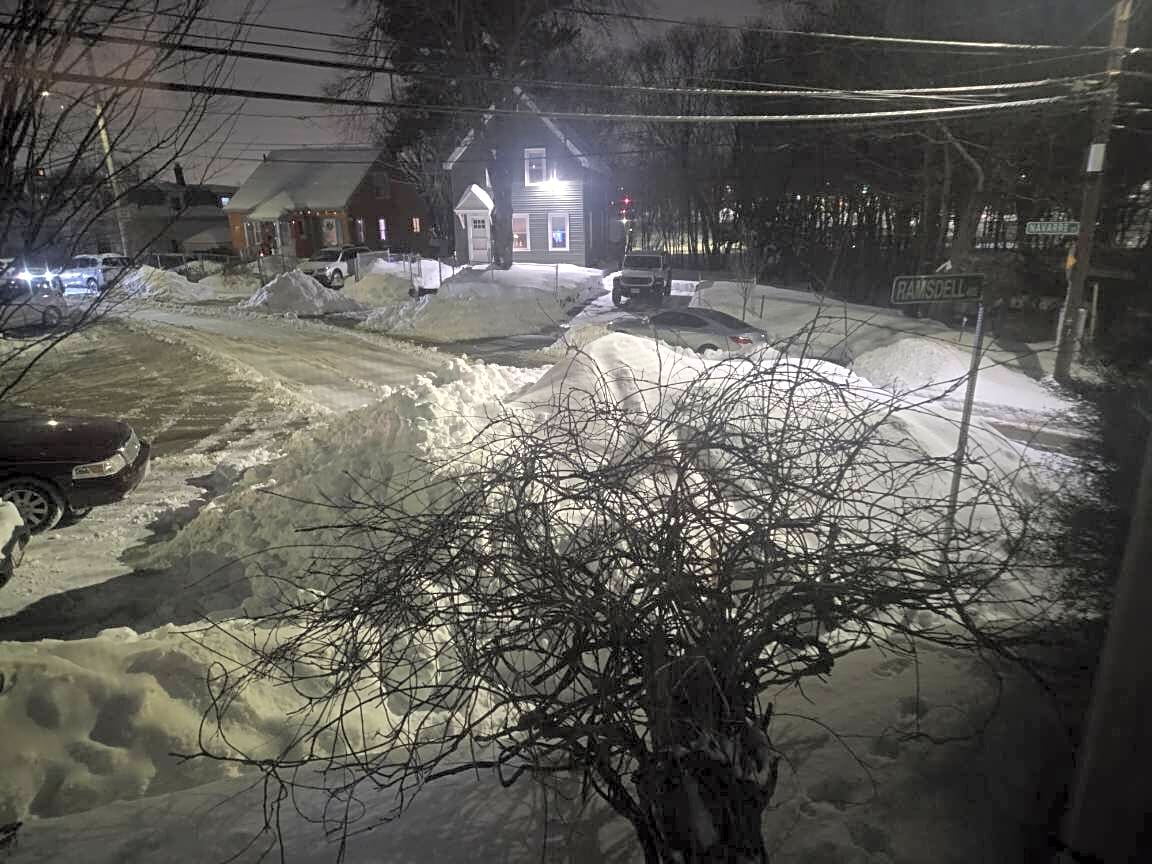 Intersection Of Jalleison St And Ramsdell Ave And Navarre St, Hyde Park, MaLarge snow pile at intersection. Blind spot for opposing traffic.