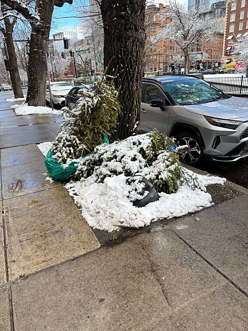 Trash + trees 🎄. Please pick up/remove. Thank you very much.
