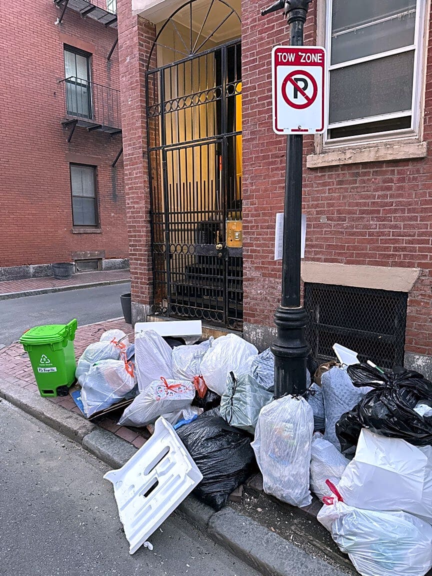 Intersection Of Fayette St And Jefferson St, Boston, MaGarbage left by neighbors obstructing exit
