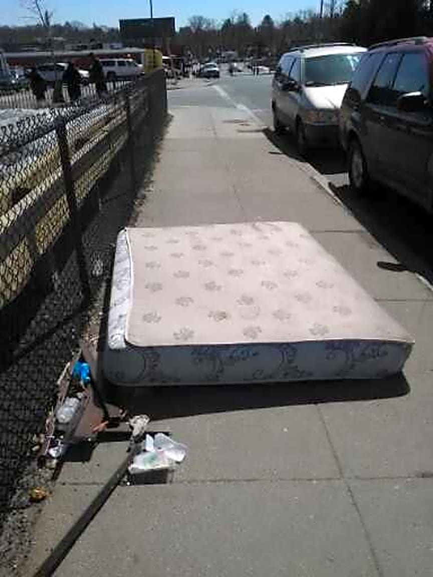 - Other | Details: [Caller reports, A matress sitting out in front of the burger king near the address lsited. The mattress has been sitting there for days now and no one has moved it.] Exact location: [sidewalk]