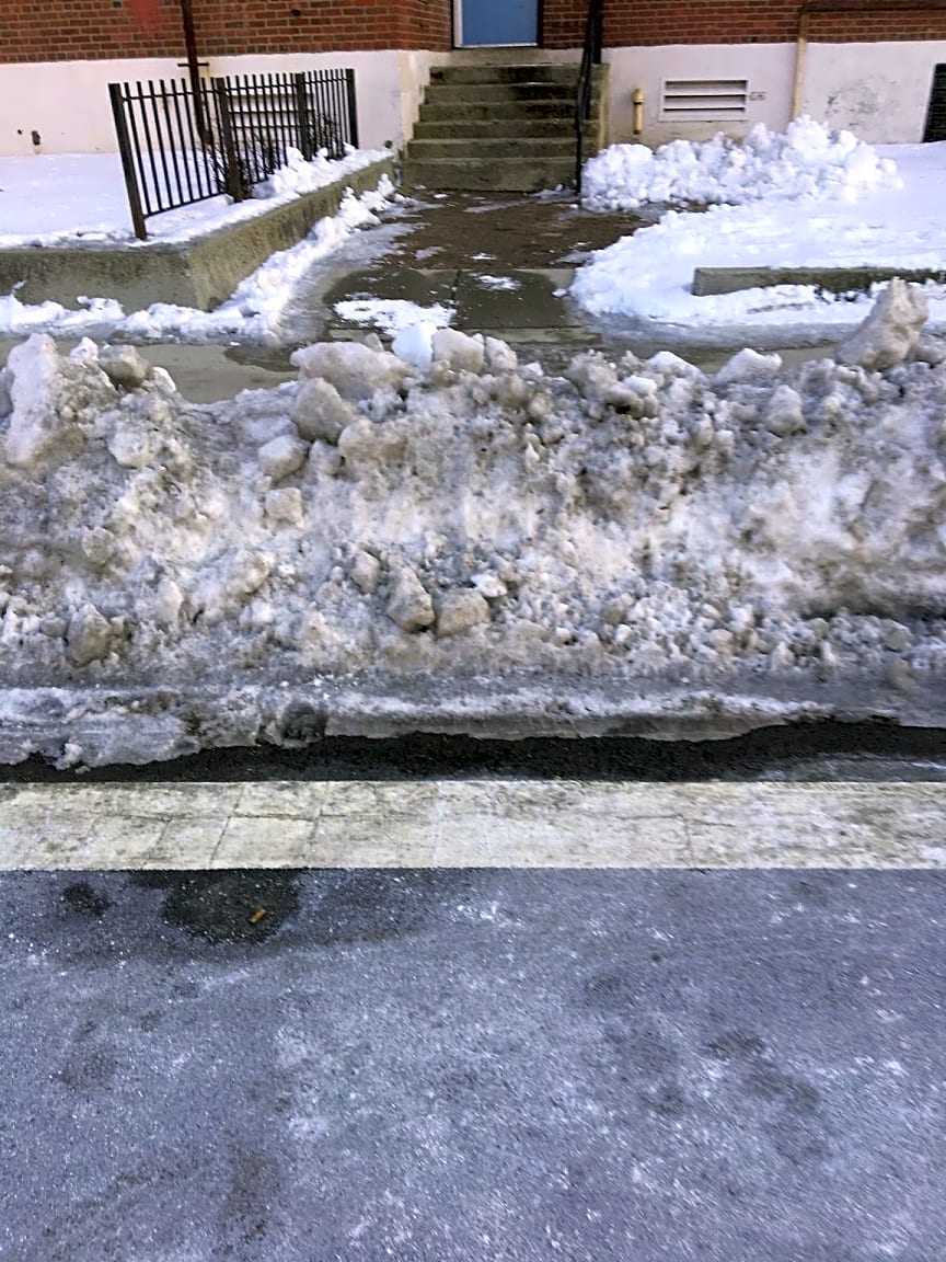 - No access to sidewalk from crosswalk... more streets within this BHA development with poor shoveling of sidewalks/walkways and sidewalk handicap ramps | City Owned: [No]