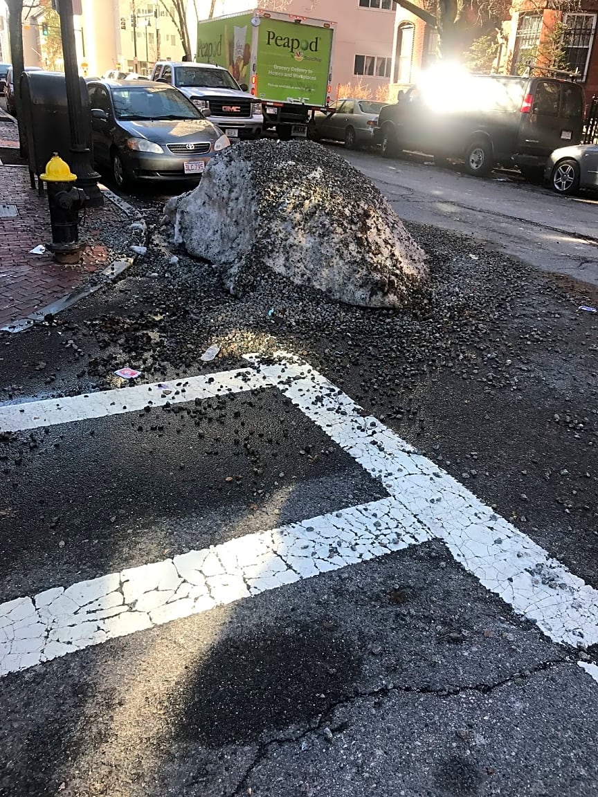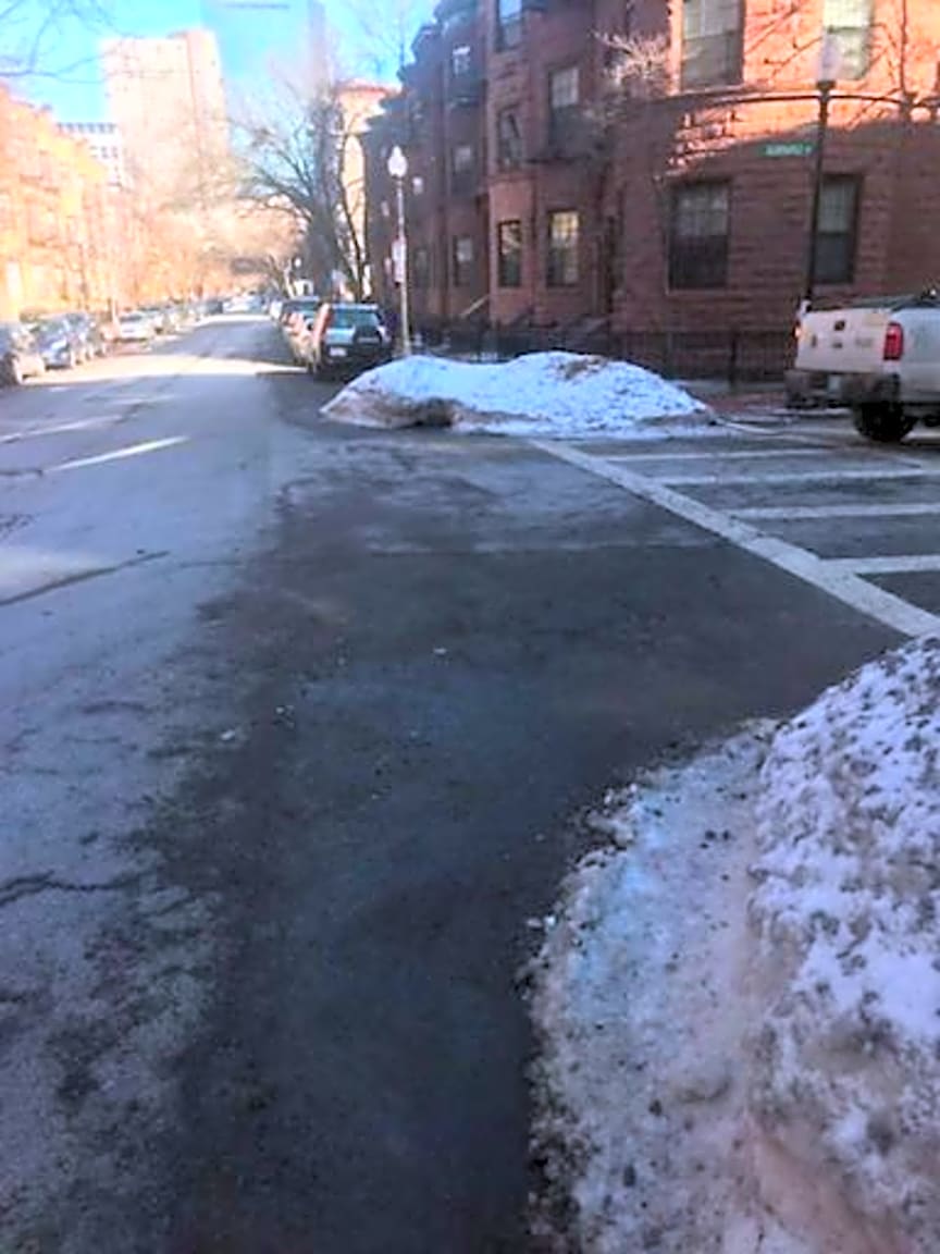 - Rocks left all over the road and sidewalk after plowing. End of Albemarle St at Saint Botolph St.