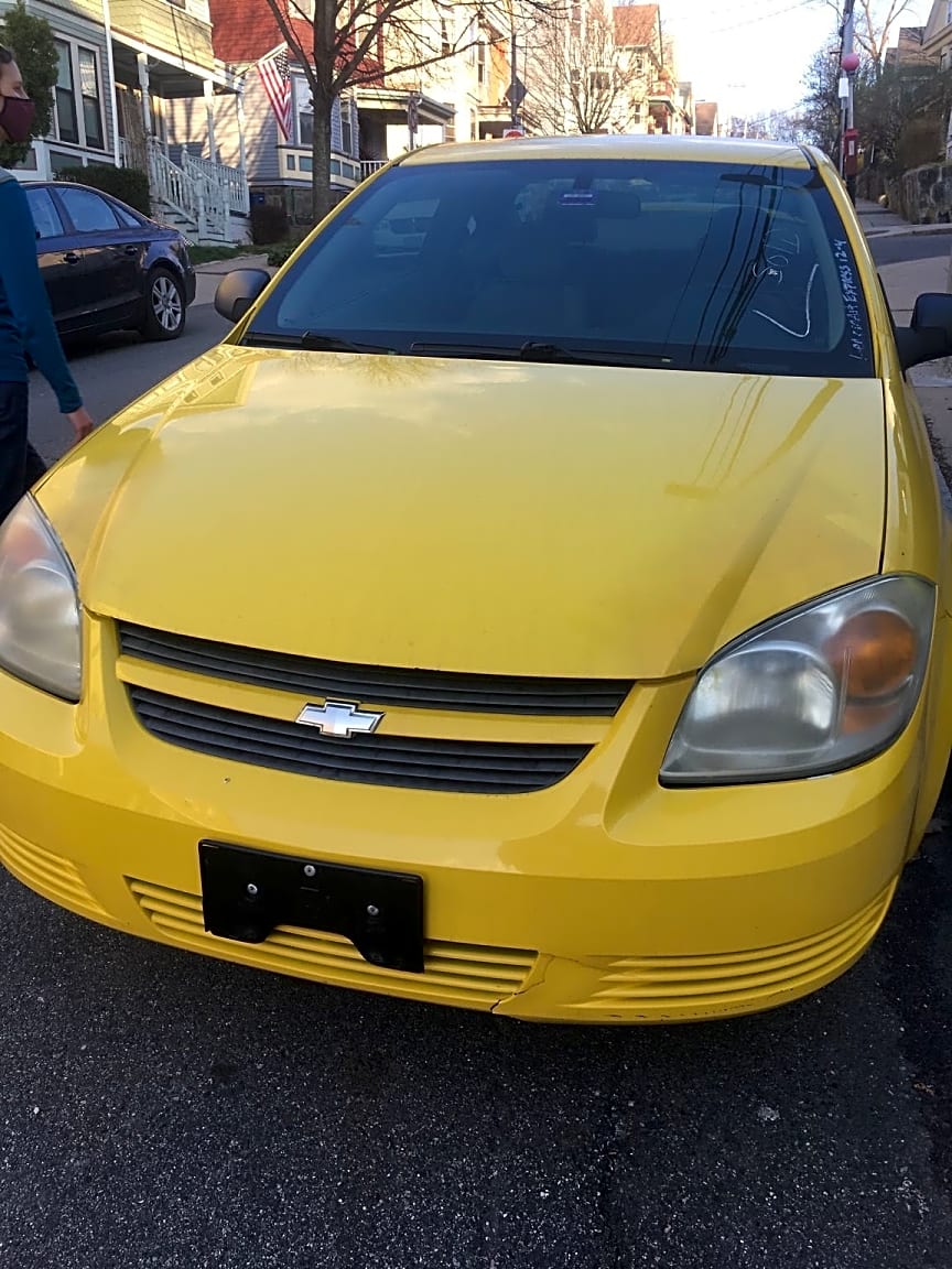 - No plates, no sticker, car has been here at least a month. Needs to be ticketed / towed. bright yellow chevy |