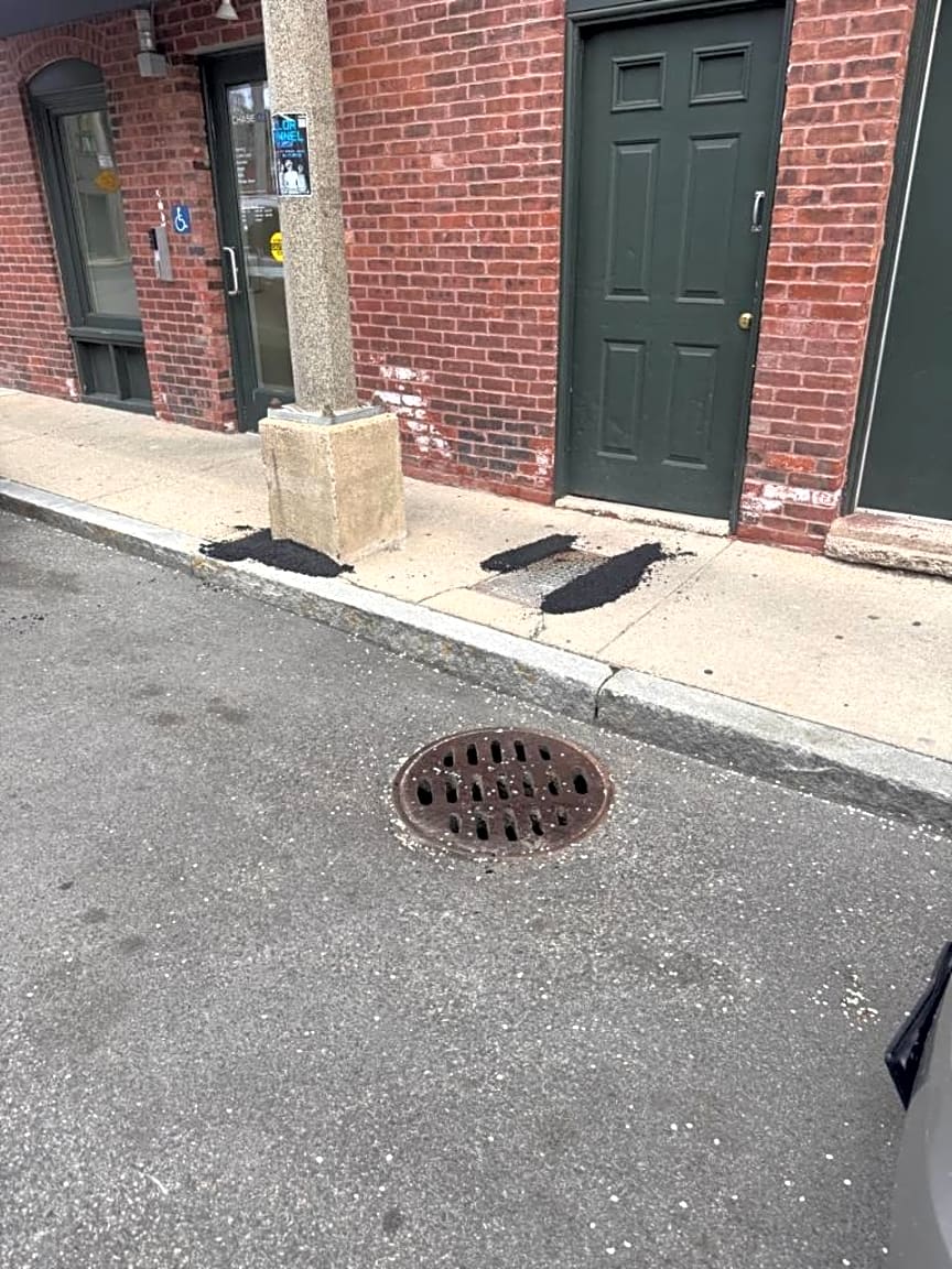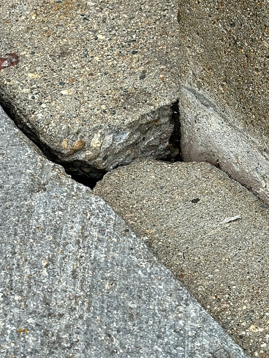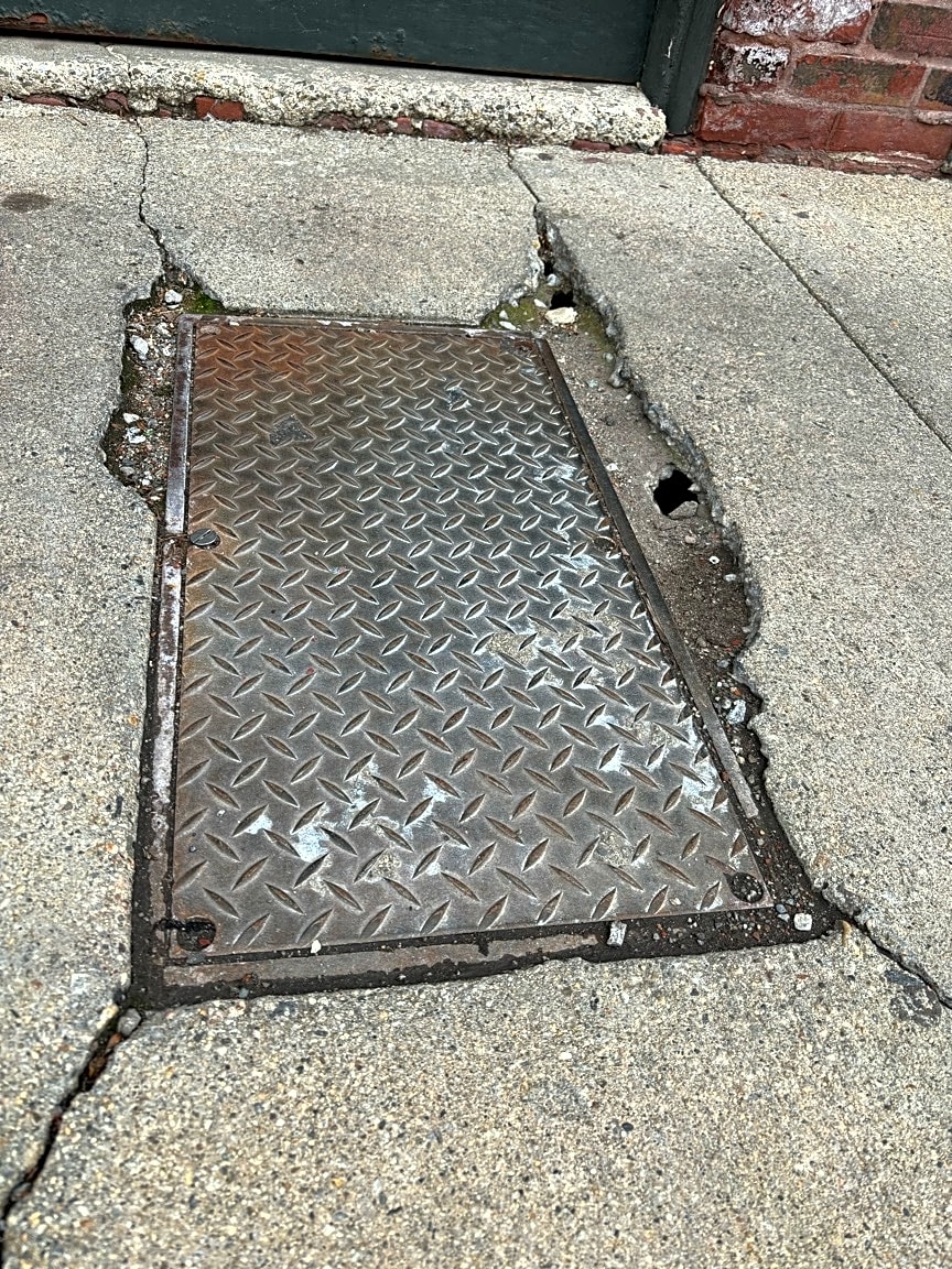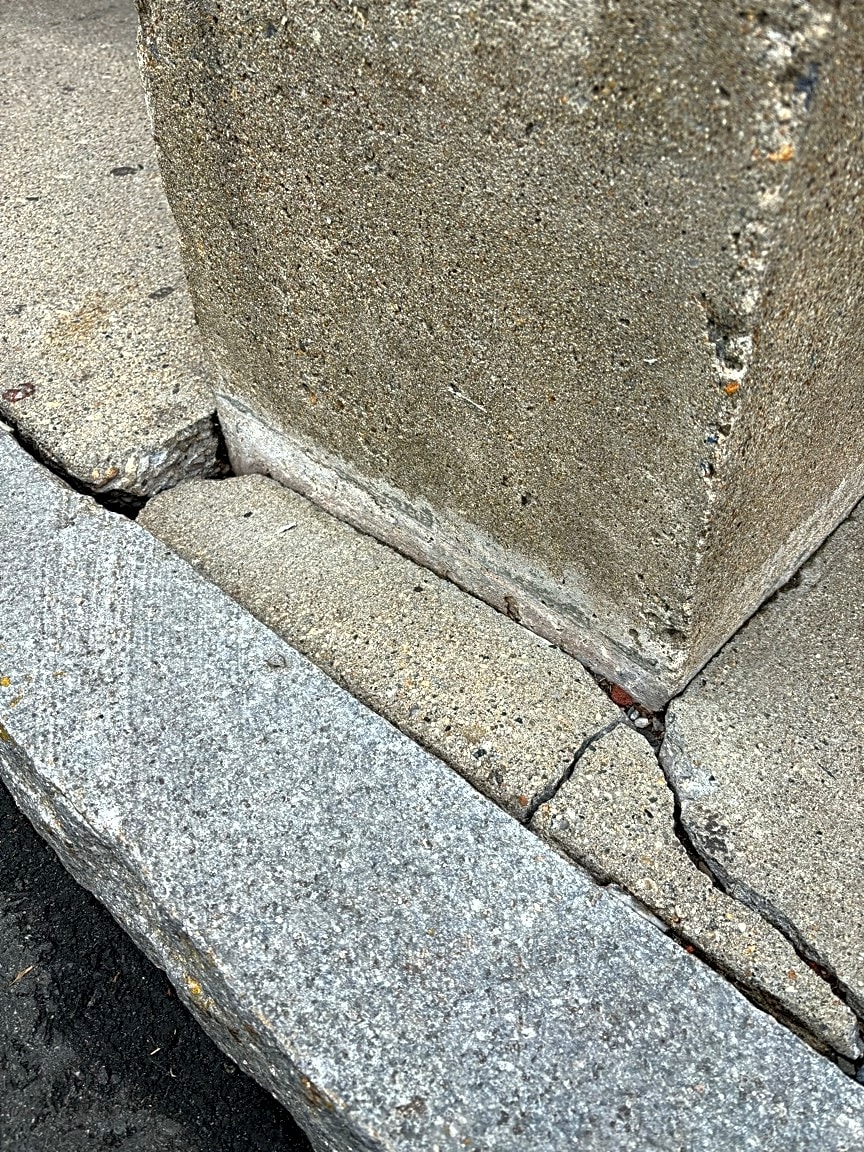 - Sidewalk caving in around light pole. Rear Entrance of Chase Bank ATM on Burroughs Street.