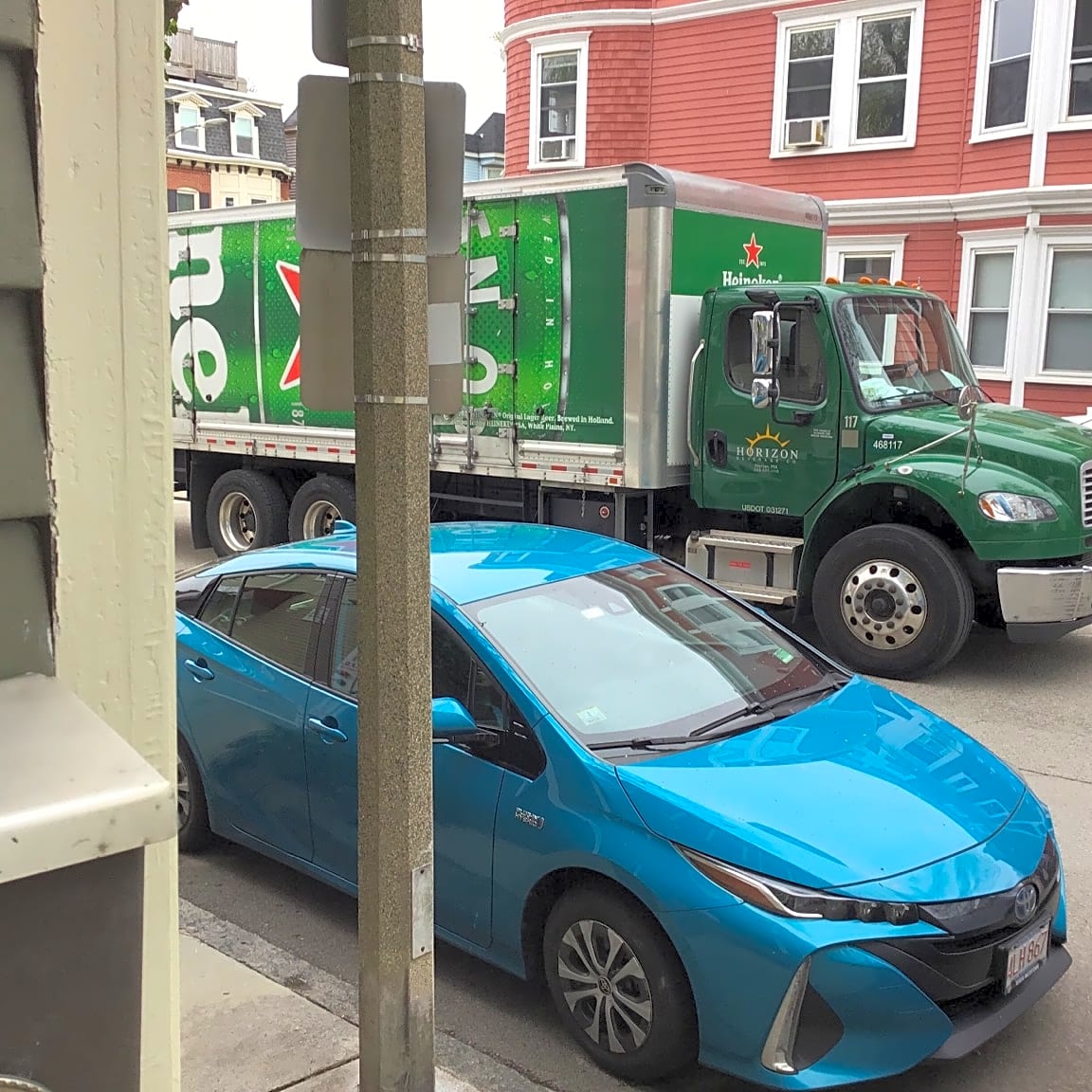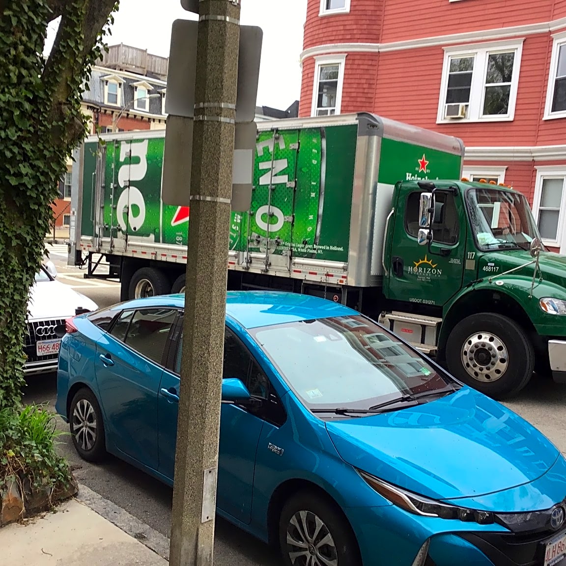 - Beer Delivery truck idling on residential St. (75-79 O St) while delivering to 869 East Broadway “East Broadway Market”. Trucks this size are forbidden on residential streets.