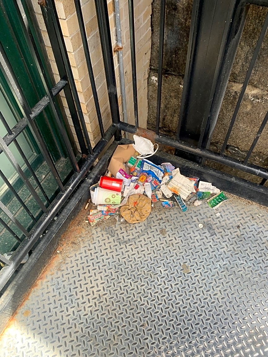 - Trash in public stairway