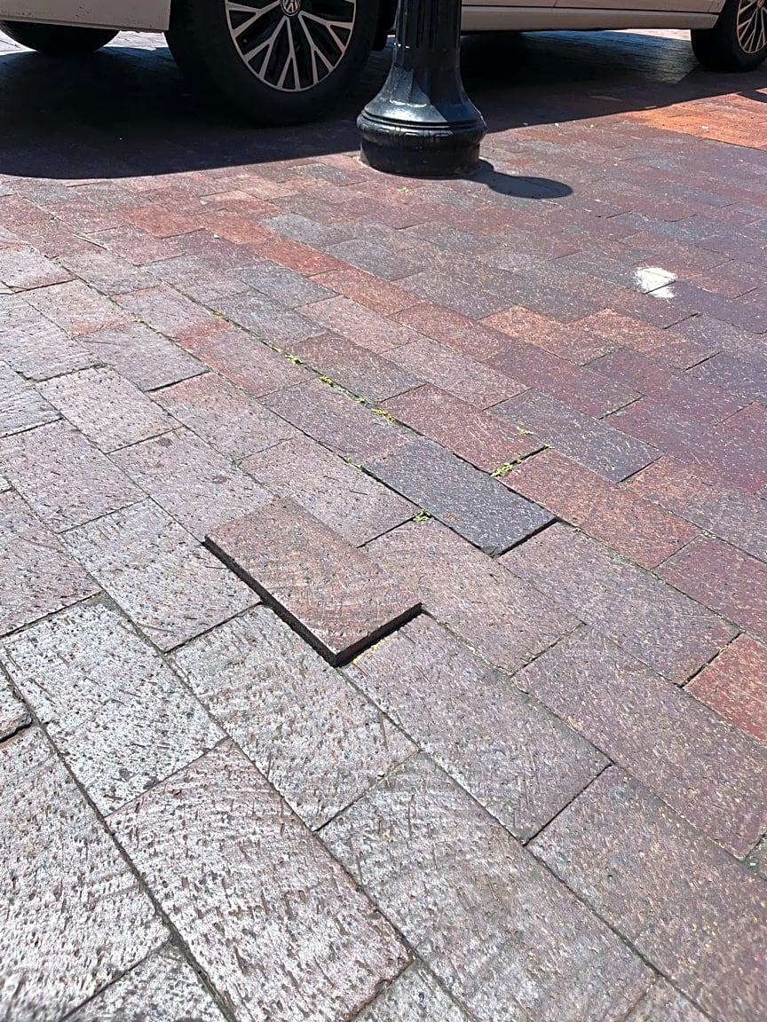- I tripped on this brick. Please fix so others do not. Thanks.