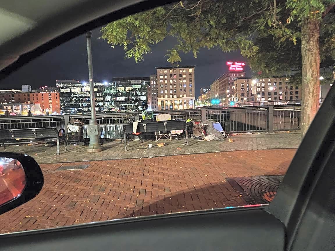 - Campsite on Dorchester Ave behind FRB building. There is a second campsite here. This is the fourth report of a campsite at this location in five days. The public avoids this sidewslk and all its benches because of thd utter garbage surtounding these sites.
