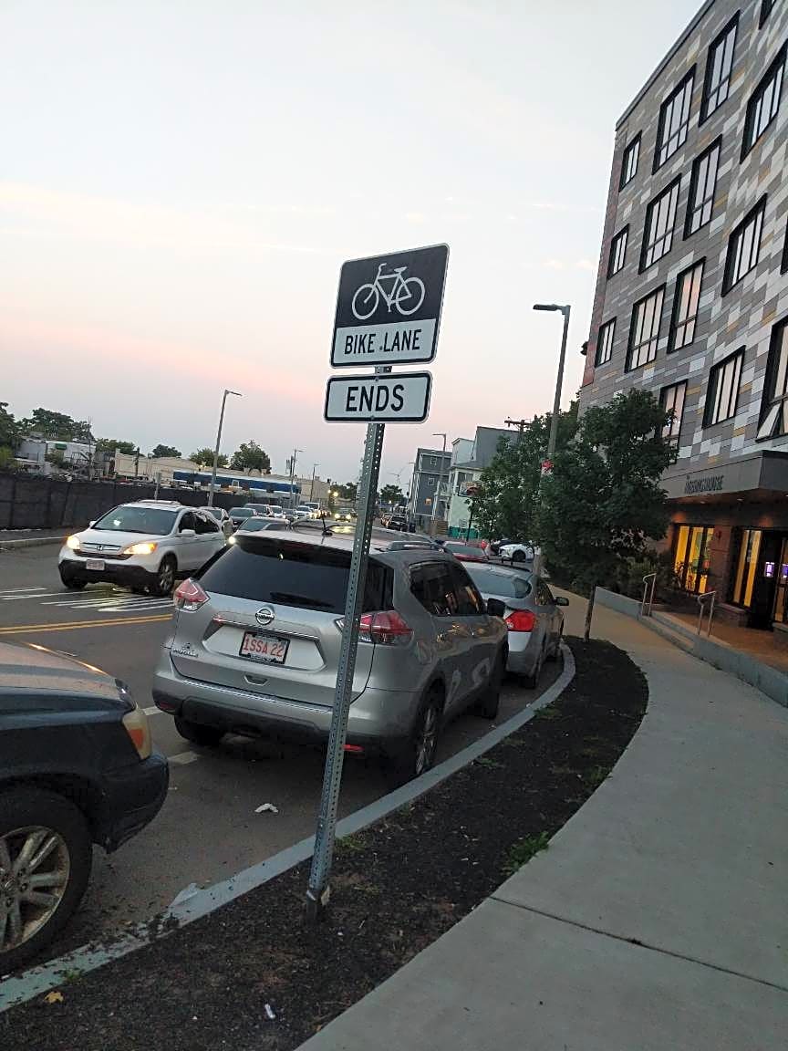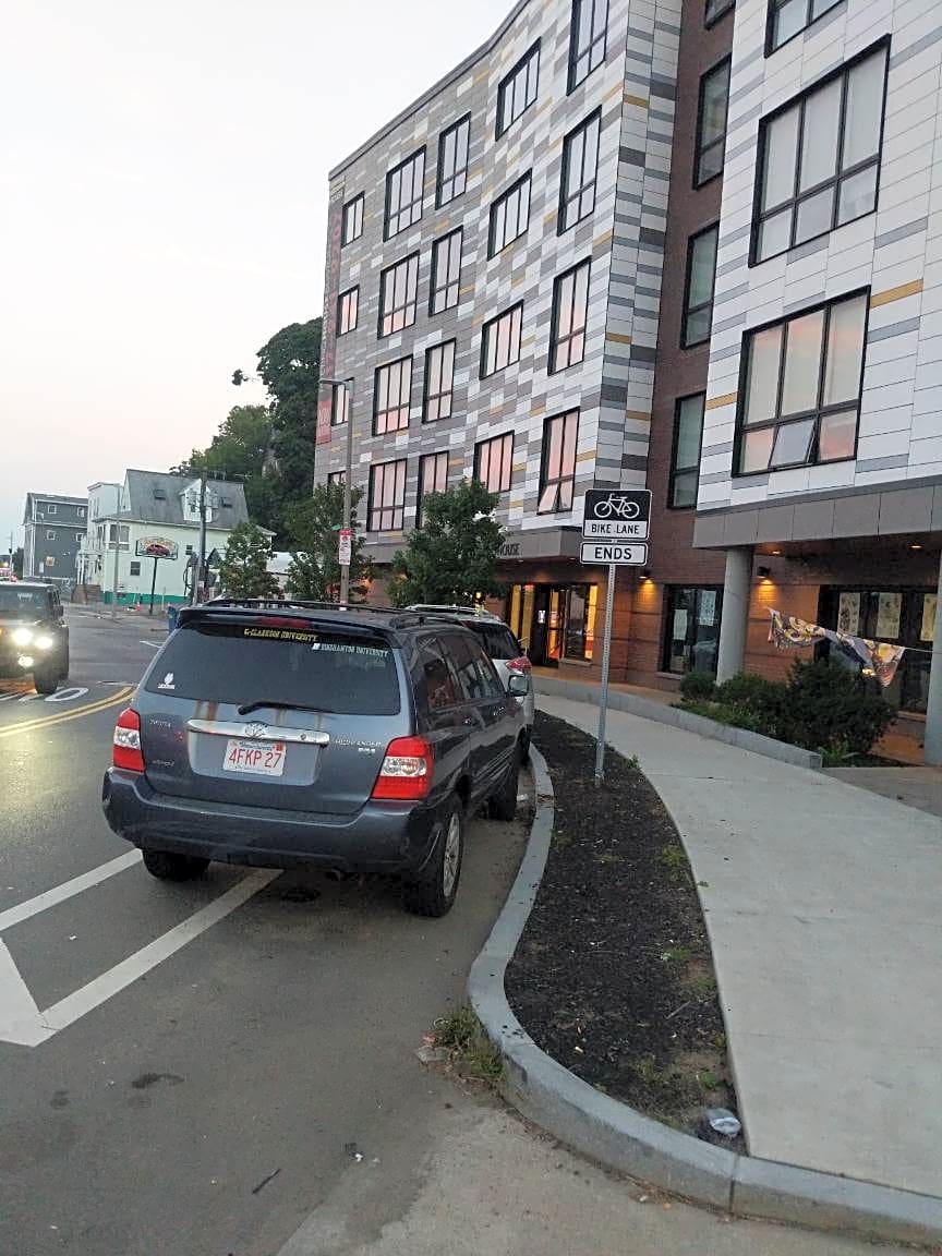 Case Resolved. There's a sign stating Bike Lane Ends. those vehicles are not in any violation.