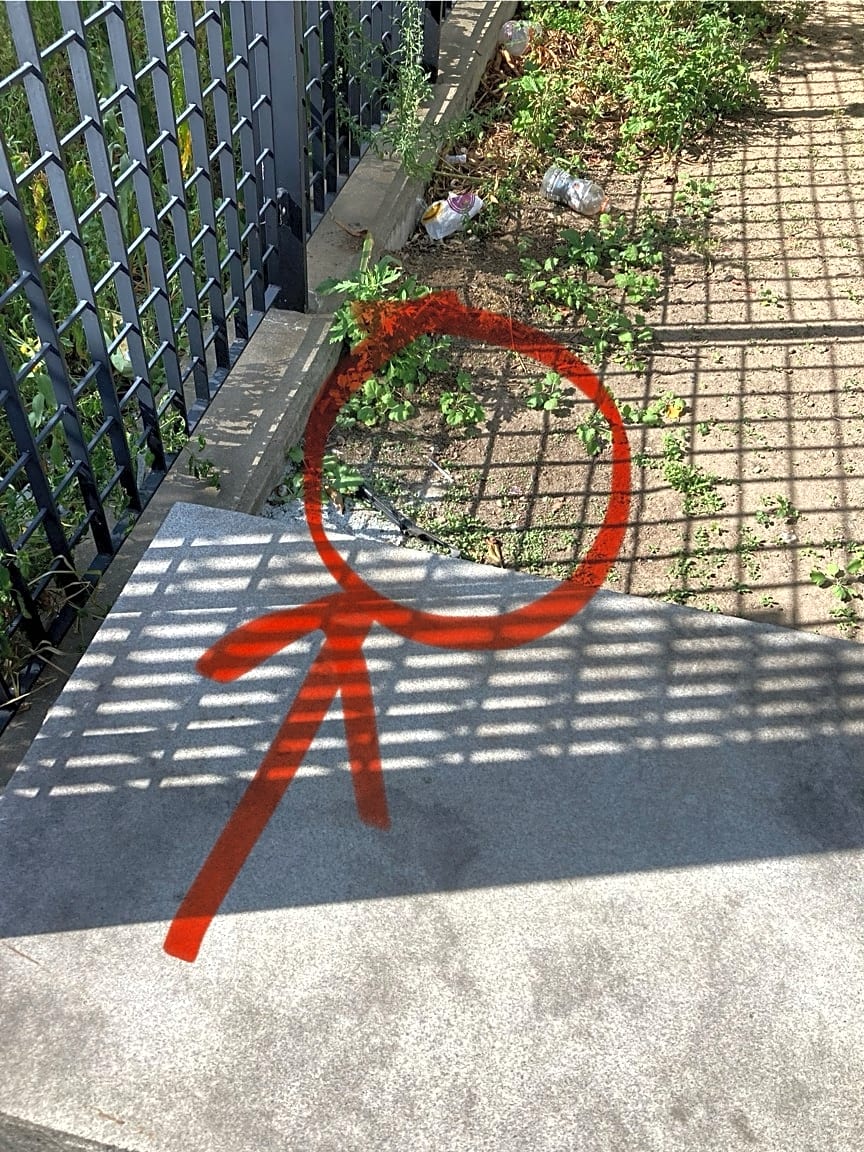- Behind the blue bike station. On the southern side.