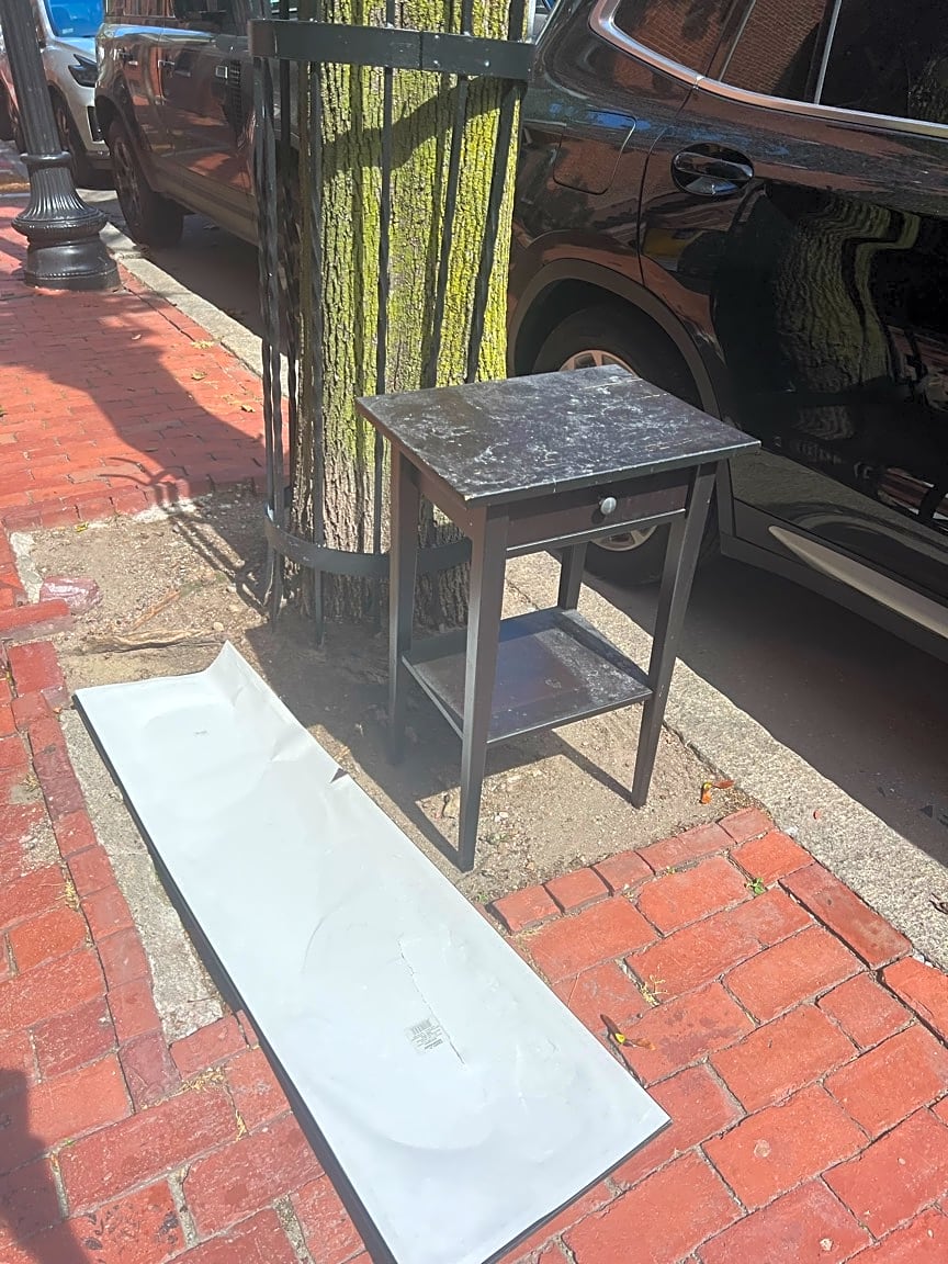 - People who don’t live in our apartment building have been leaving trash out in front of our apartment. This is from Monday 9/2. As of today Thursday 9/5, the mirror is still there.