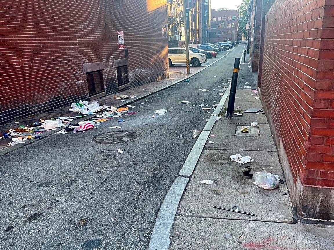 - A lot of trash in alley on Fairfield btwn Newbury & Comm Ave, both sides of alley