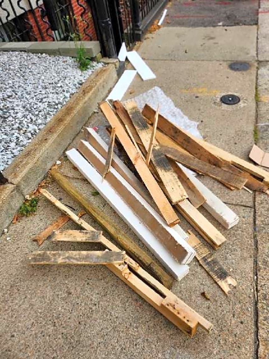 - Illegal construction trash on the sidewalk outside of the pickup hours!