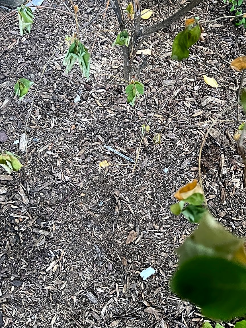 - Used needles in our front yard/stoop area
