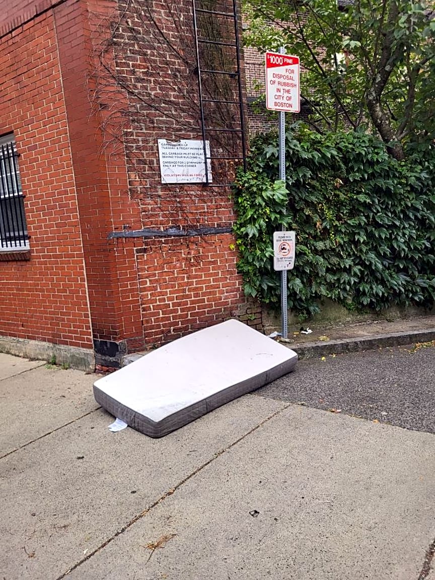 - Constituent states mattress has been dumped iin Public Alley 809 , currently leaning against the side of 4 Symphony Rd. | Witnessed incident: [No]