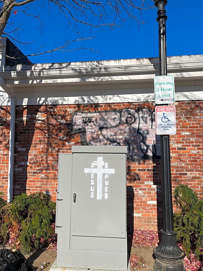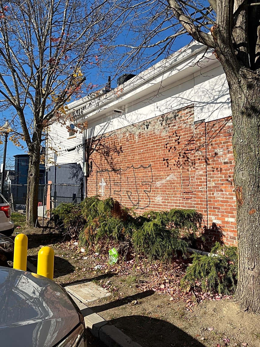 Resolved. The city of Boston property management department has removed the graffiti from this location with a pressure washer.