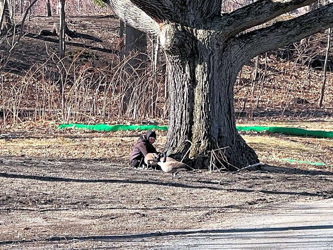- There is a person feeding ducks and geese. They are trying to hide behind a tree. | Case (SR) Type: [Animal Care & Control] Referred To: [ANIMAL CARE & CONTROL STAFF]