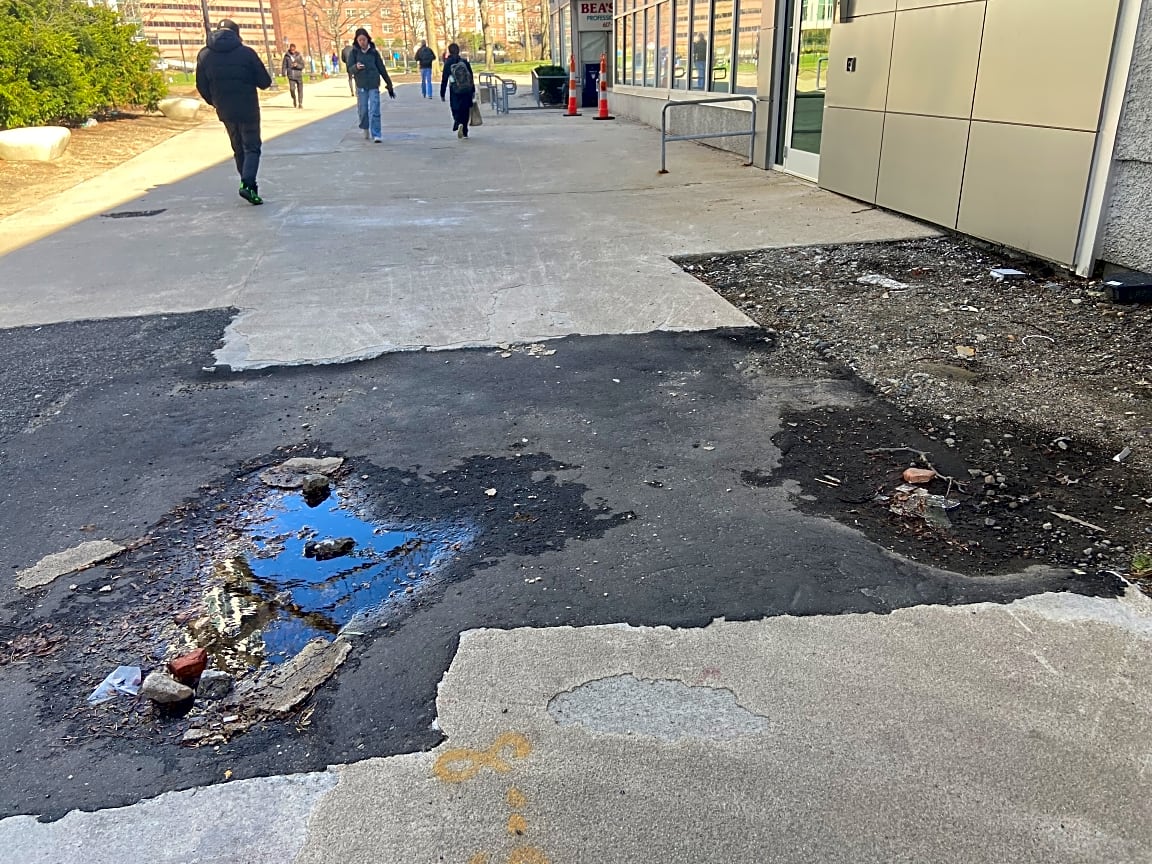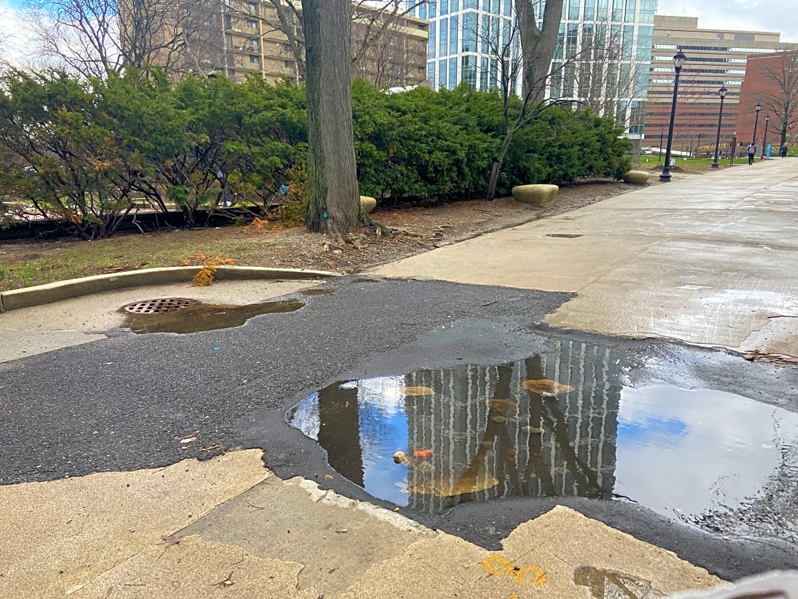 - The area is Thoreau Path in the West End. There was a water main break earlier in year & area was not adequately repaired. Pictures shows water accumulation after & before a rain event. Repair is needed as this is a safety issue. Thank you