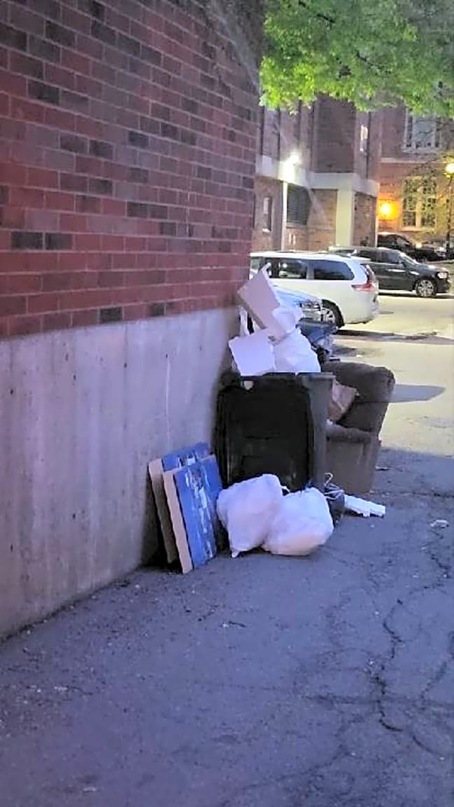 - In the alley off Follen st on the east side of Follen.Two garbage dumpsters are overflowing so their tops are gaping open. This is the 4th time in the past month this has occurred. No wonder rats are all over in the alley. The dumpsters appear to belong to the public housing building on st botolph st which backs on to the alley.