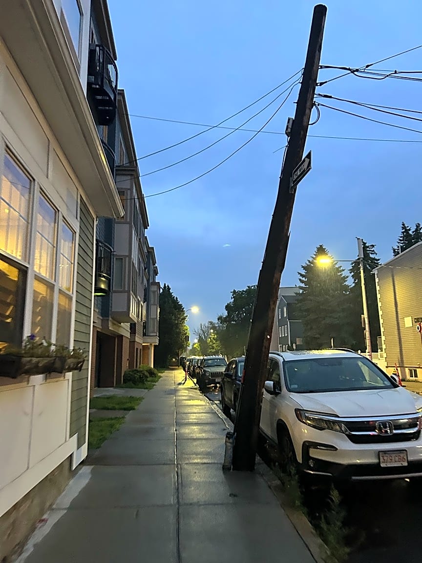 - The pole to the power line is now leaning, afraid that it could become unstable and fall onto the street | Case (SR) Type: [Eversource/Power Outage] Referred To: [EVERSOURCE (NSTAR)]