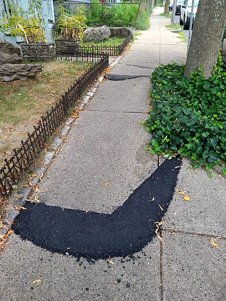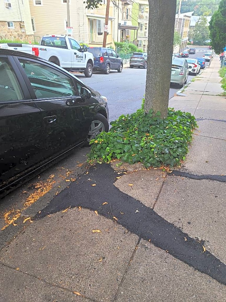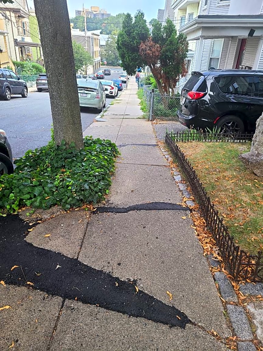 - Here we have a small version of our own El Capitan summit in front of 26 Weld Hill Street in Jamaica Plain. As a fine and dapper young lady, this small El Capitan is a breeze to transcend (but not the street.. goodness gracious these hills are no joke), but one evening after dinner, I locked eyes with an older lady walking with a cane. She asked for a hand (literally) to help her down this mini-El Capitan. The sidewalk has been disrupted due to the tree that has grown there (not the complaint, but wow look at the beauty of a tree while you're out there looking). Anyways, please fix this so the lady with the cane can walk on the street without the fear of falling, and so I can sleep soundly without worrying that she has fallen because I wasn't out there at the right time holding this complete stranger's hand. Thanks in advance. (Acorn for reference, no banana around).