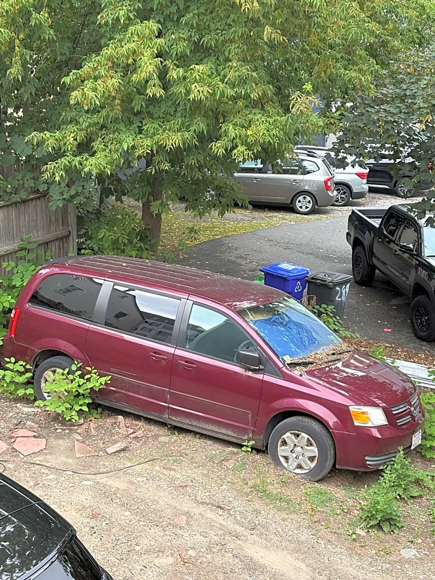 - Abandoned Vehicle - dirt lot behind 322 ATHENS ST connected to Dyer Ave. RED DODGE VAN 163PS4 MA