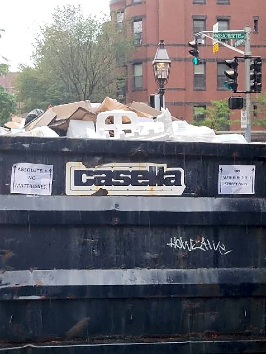 - Other | Details: [dumpster outside of location is over flowing and the contents are blowing all over the street] Exact location: [front]