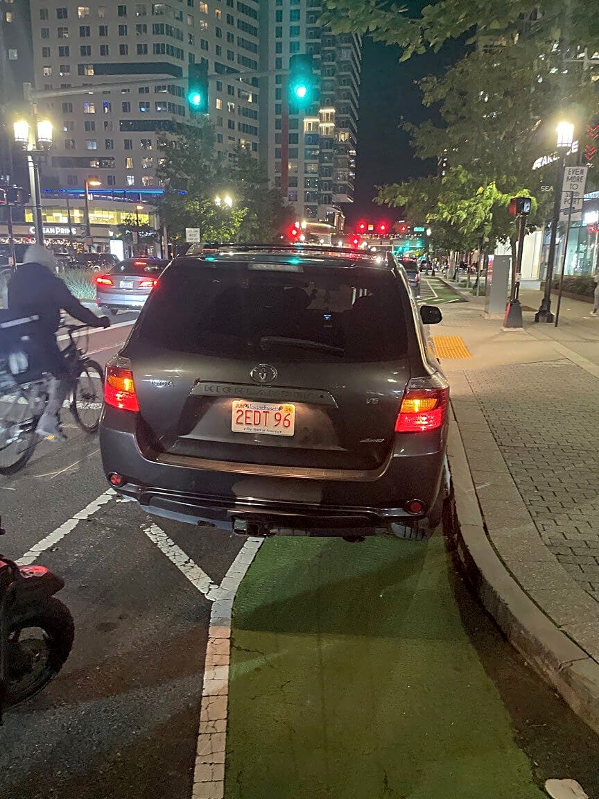 - Parked in bike lane.