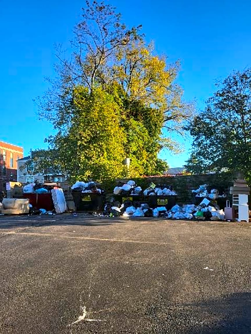 Resolved. Violation was issued for overloaded dumpsters, illegal dumping, and site cleanliness.