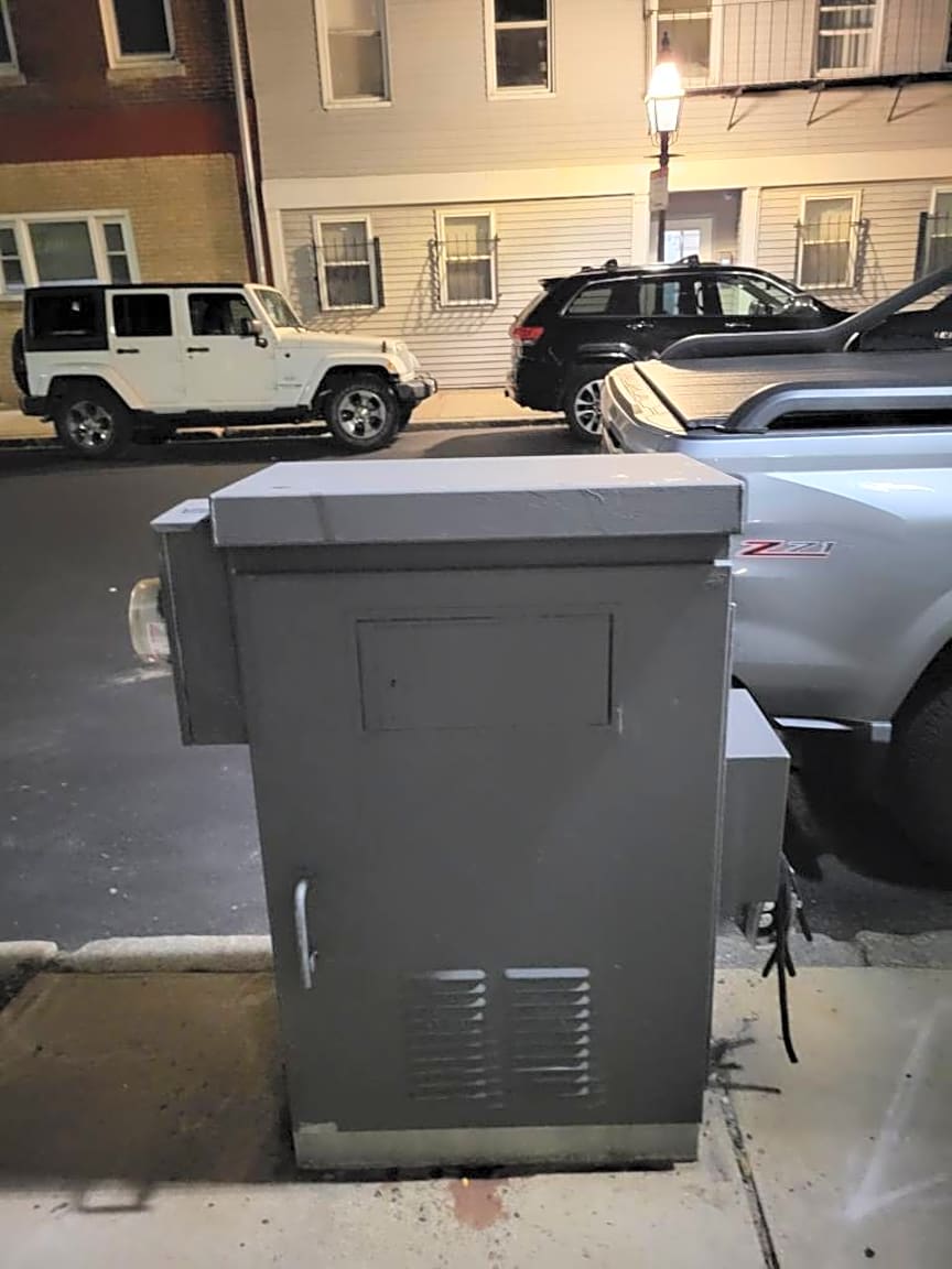 - Constituent states that a street lighting control box is open, could be energized. On-call inspector contacted at 9:35pm, On-Call number contacted at 9:35pm.)