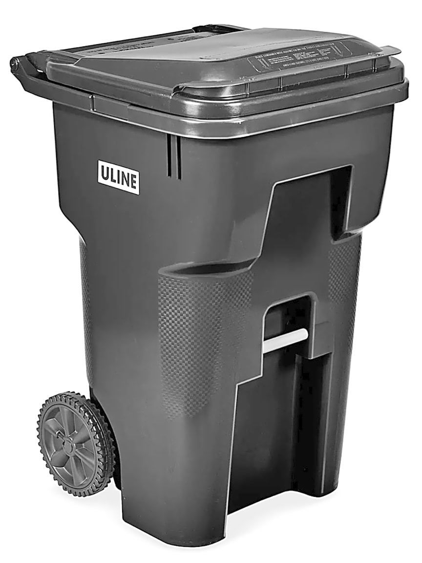 Resolved. Residents may use any standard trash barrel or tote between 35 and 96 gallons, weighing no more than 50 lbs when full. Barrels with wheels and a lift bar are optional but strongly recommended for worker safety and ease of service. Please note: The City will not service any barrel or tote that is locked or strapped on your collection day. These containers may be used on your property on non-collection days, but they must be fully accessible and unlocked at the curb for pickup. Thank you for helping keep collection safe and efficient. Attached is a photo of a standardized and safe trash bin that come in 35, 65 and 96 gallon sizes.