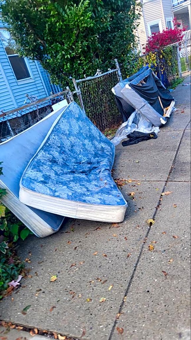 - Discarded mattress and box frame has been out on sidewalk for weeks.