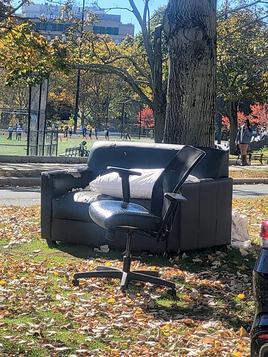- Constituent reports illegally dumped bike rack, chairs and couch in the median strip in between Jersey st and Kilmarnock st. | Witnessed incident: [No] Case related to commercial waste: [No]