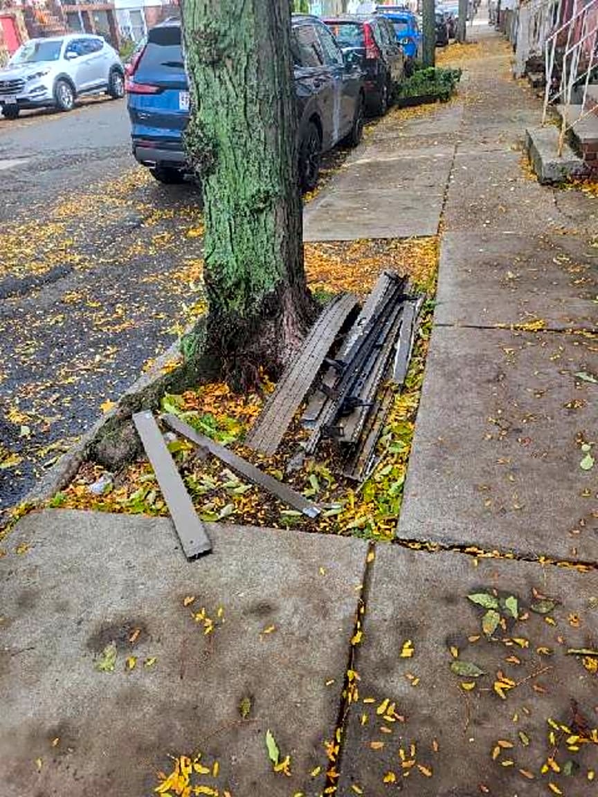 - Residential trashed illegally dumped in front of 107 Lexington. Please ticket and remove.