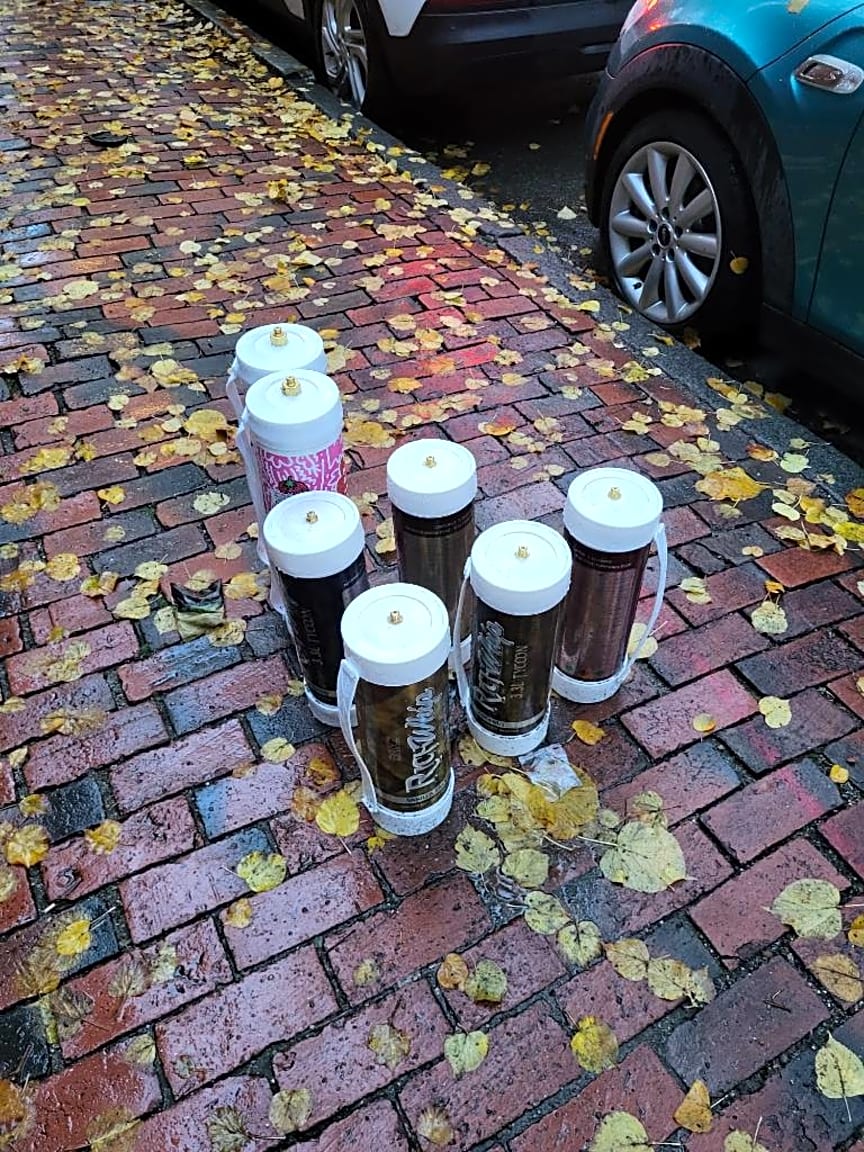 - someone dumped 4 2ft hign metal cylinders on the side walk on the W Cedar St side | Case related to commercial waste: [Unknown]