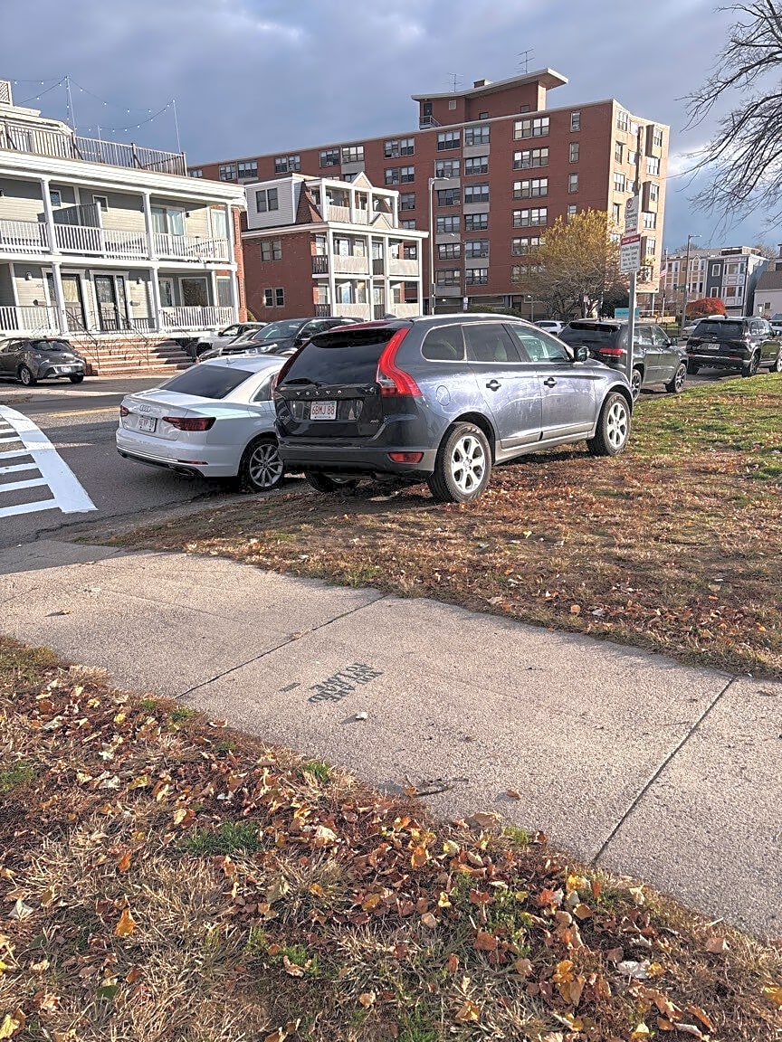 - Cars parked illegally on greenway