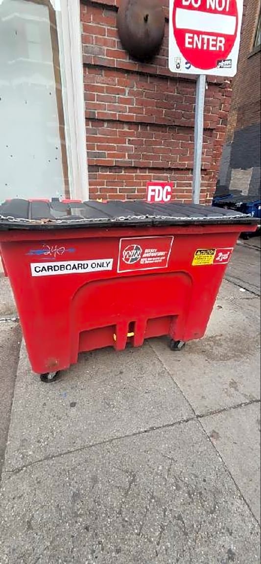 Noted. Citation has been issued for dumpster on sidewalk.