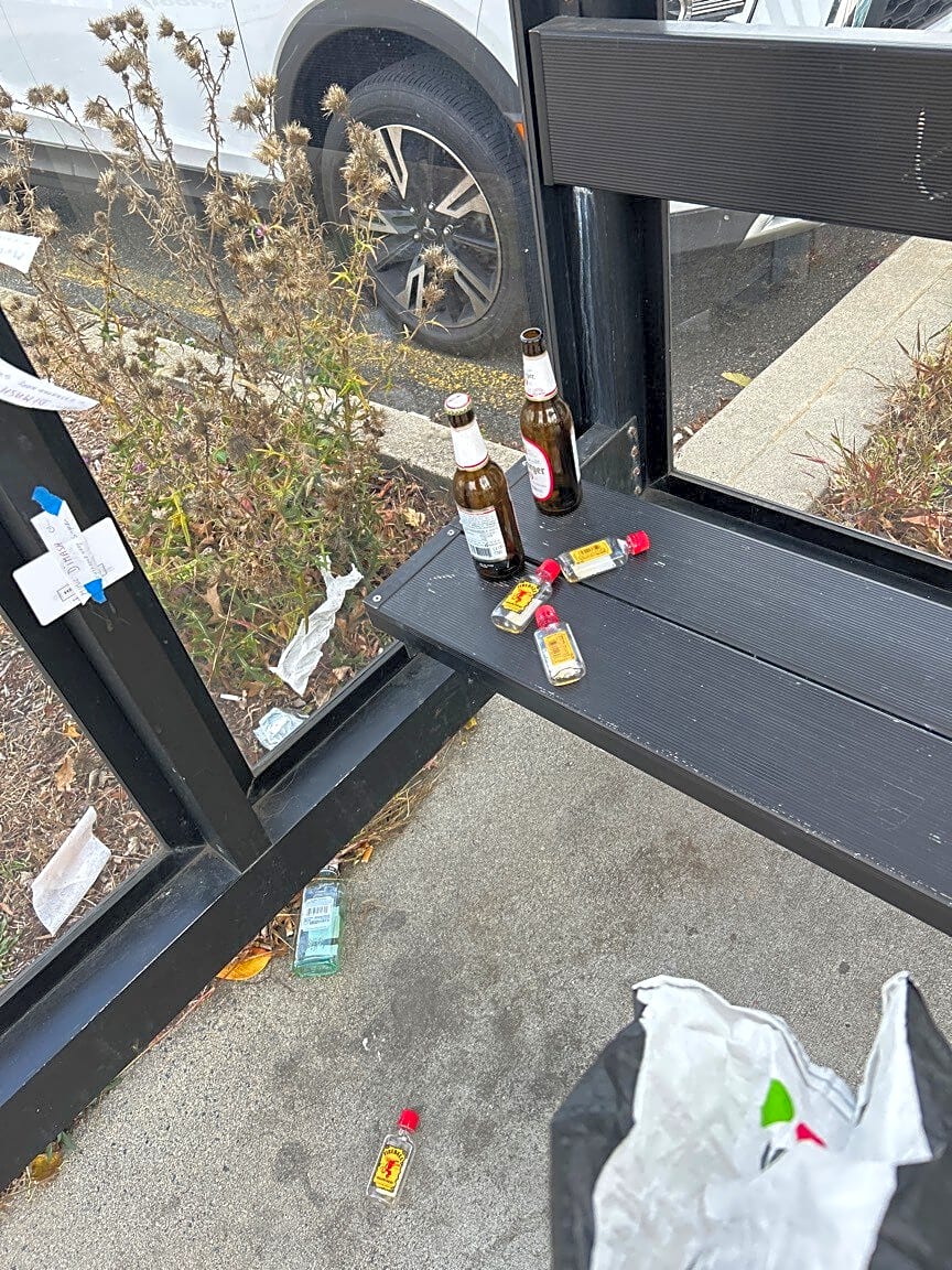 - Lot of trash at T bus stop