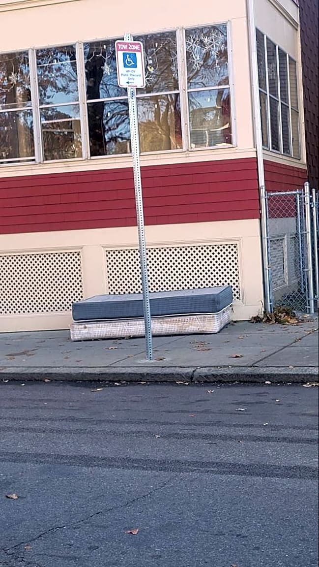 - The constituent states that someone dumped a mattress and bedframe infron of his residence. He doesnt want to be fined. It doesnt belong to him. Requesting assistance with this matter. | Witnessed incident: [Yes]