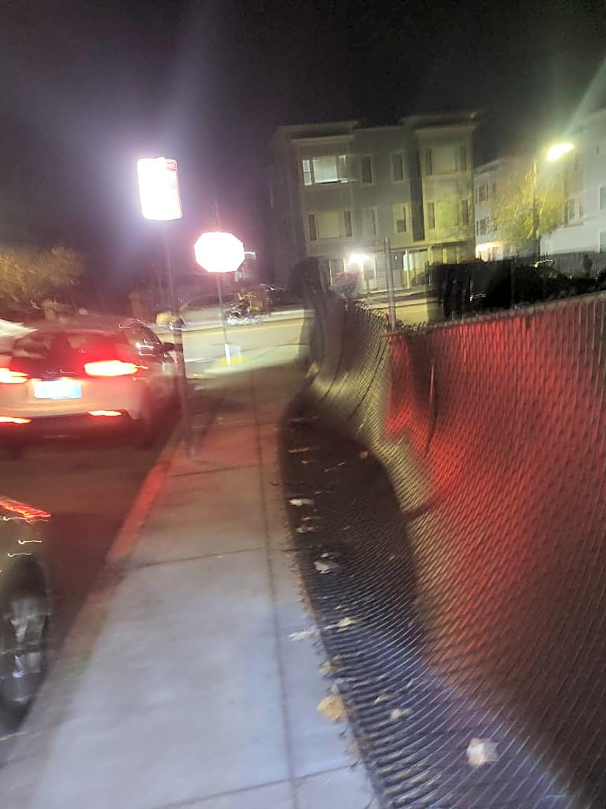 - Fence leaning into sidewalk. As it gets cold and icy this will be dangerous.