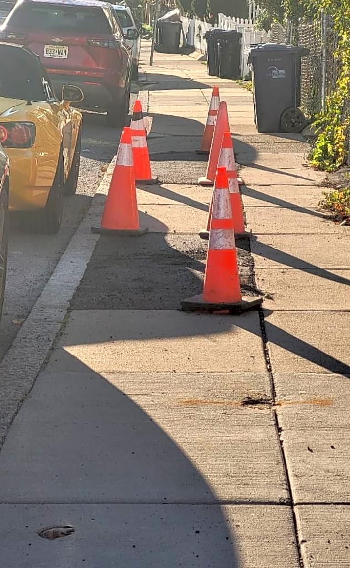 - Sidewalk broken replace with asphalt which is worst than the broken concrete