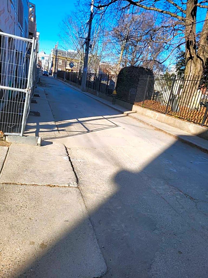 - Trash strewn on the street. Tudor Street between F Street and Dorchester Street.