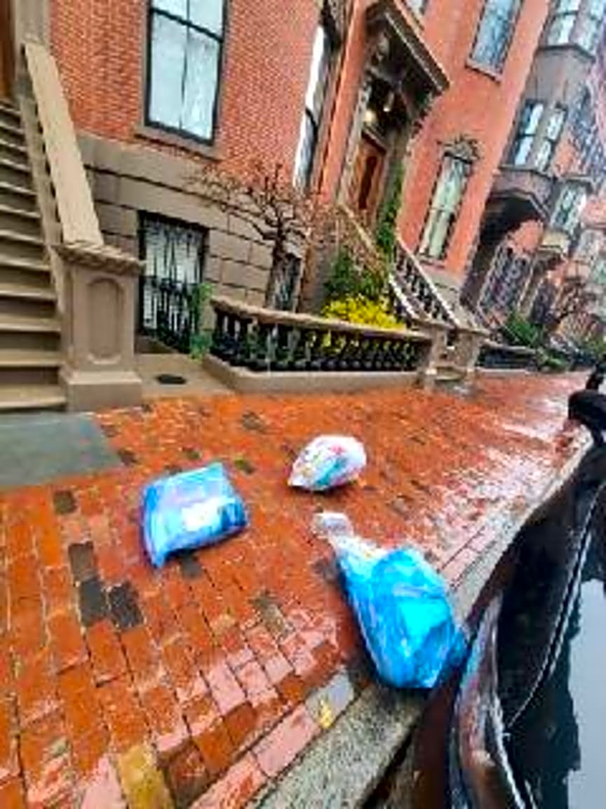 - Recycling put out after collection on sidewalk in front of several buildings on the odd side of Union Park. (Between Shawmut and Tremont). Recycling truck came much, much earlier than usual today.