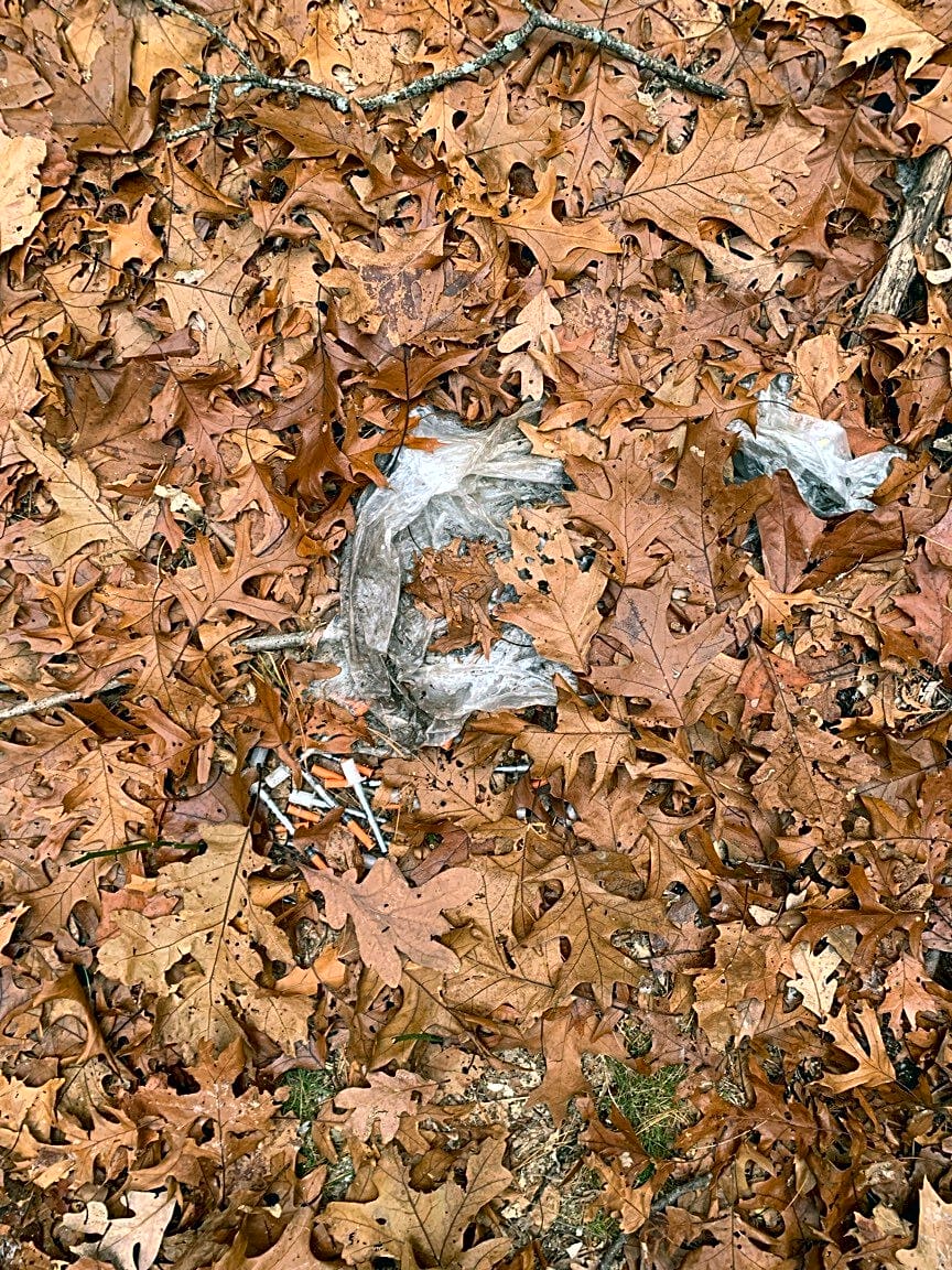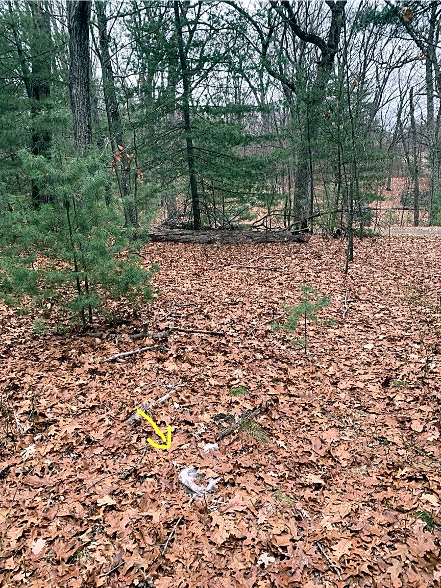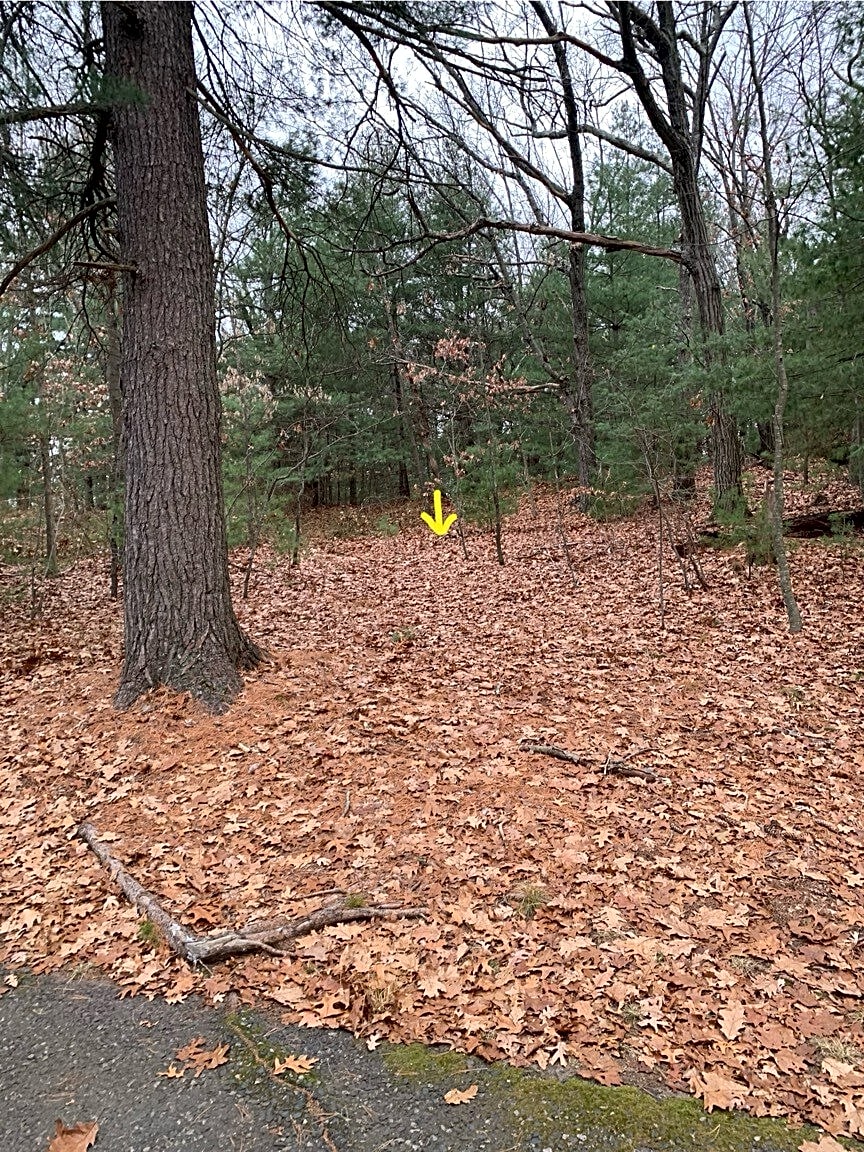 - Pile of needles. From arch: up 99 steps, past stone block sitting area, on the left from the paved path.