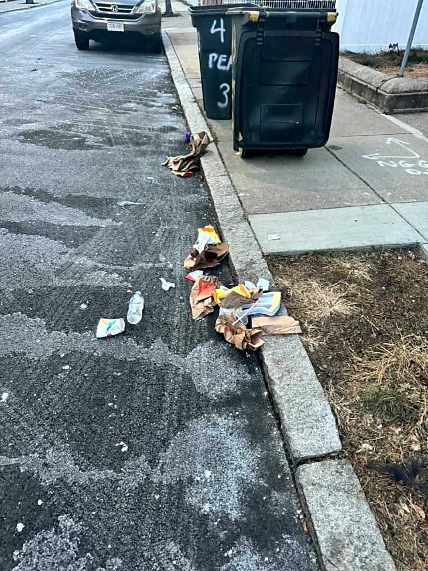 - Trash all over street and sidewalk in front of 43 Pearl Street Dorchester. Please come and sweep.