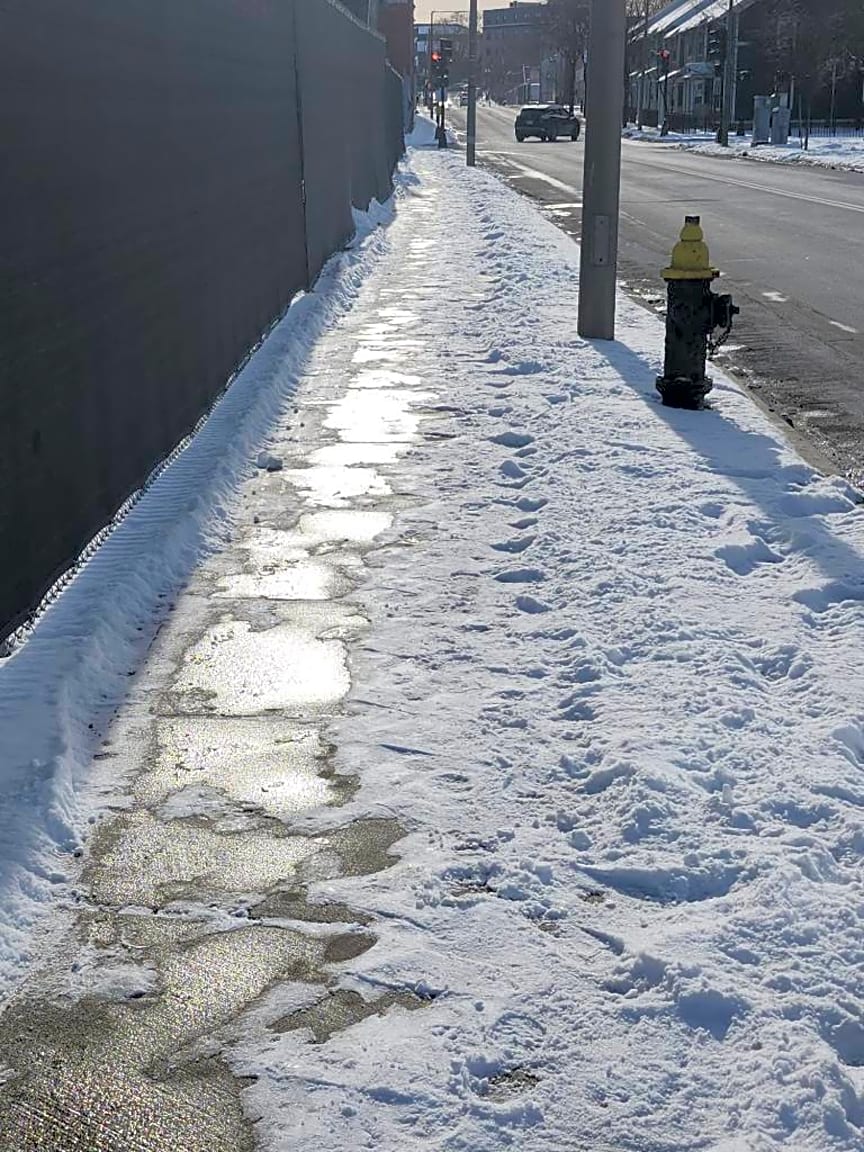 - I know this is Roxbury so it’s definitely the city like the last priority for a snow removal, but can we please get these sidewalks shoveled? They’re slippery and dangerous and people live here. Please treat this with the amount of urgency that you would with like back bay or Beacon Hill.