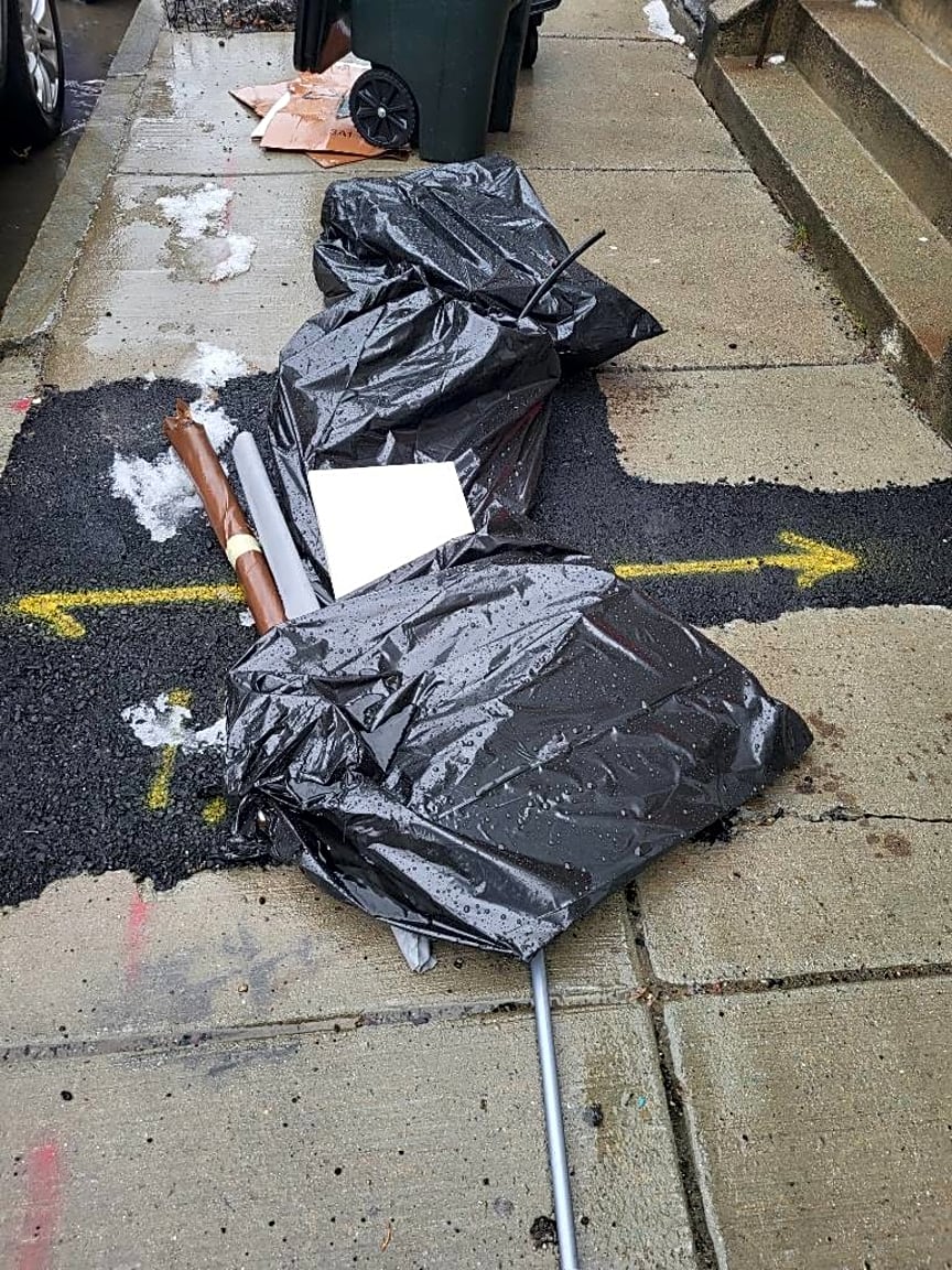 - Someone dumped heavy trash bag in front of my house after trash pick up