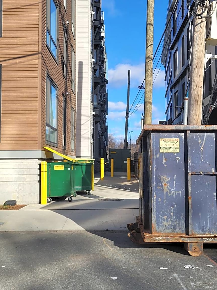 - 1550 on the Charles rental apartment always let their dumpsters run free on the street. It caused damages to vehicle park near by and also obstruct traffic.