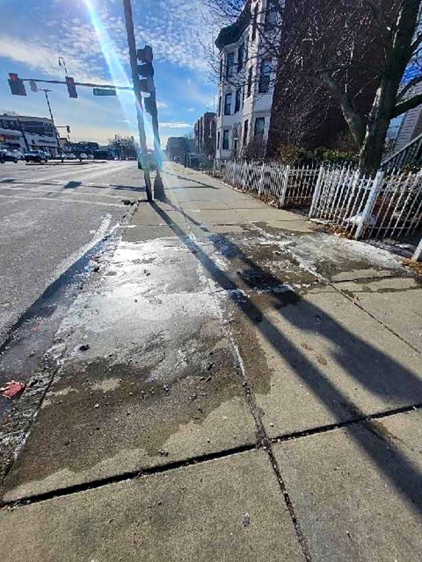 - Constituent states gutter is broken off and dumping water onto sidewalk creating a big patch of ice in front of this address. Have to walk in street to get around. This has been an ongoing thing with this address. | City Owned: [No] Exact location: [front]