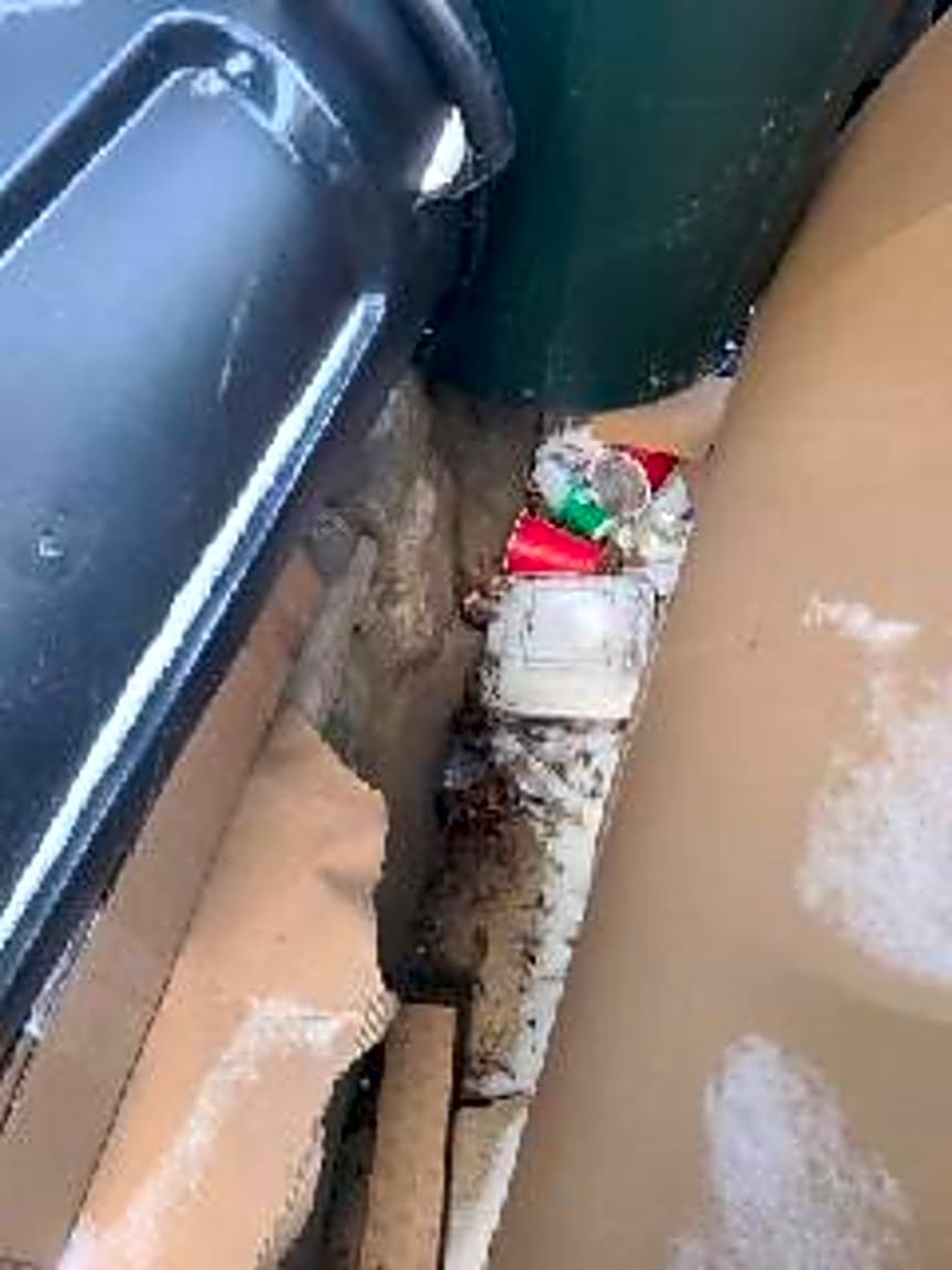 - Loose trash in between trash barrels along Greycliff Rd side of house